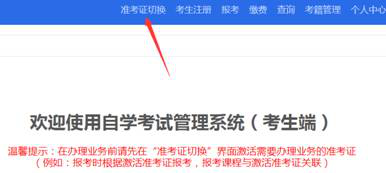 第二步:登录成功后,点击准考证切换,激活准考证。