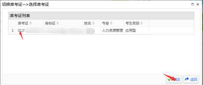 (注意:点击切换准考证后,在新弹出的窗口中选择准考证为0125开头的号码,点击确定即可。)