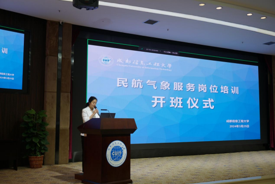 3月25日上午9时,由继续教育学院与电子工程学院共同举办的民航气象服务岗位培训班开班典礼在航空港校区国际会议厅隆重举行。本次培训班旨在提升民航气象服务人员的专业技能和服务水平,提升民航气象工作者的工作能力。学校继续教育学院党委书记易平、电子工程学院党委书记缪燕平,全国各机场培训学员及培训班相关工作人员参加了本次开班典礼,开班典礼由继续教育学院顾雯琳主持。
