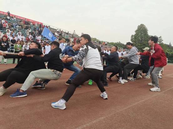 在混合师生拔河项目中,学院党委书记易平、副院长狄堃参与其中,和同学们咬紧牙关、拧紧绳子、重心后倾,铆足了“洪荒之力”往后拉,大家一起努力拼搏、荣获比赛第三名,充分体现了广大师生积极向上、团结奋进的精神面貌。