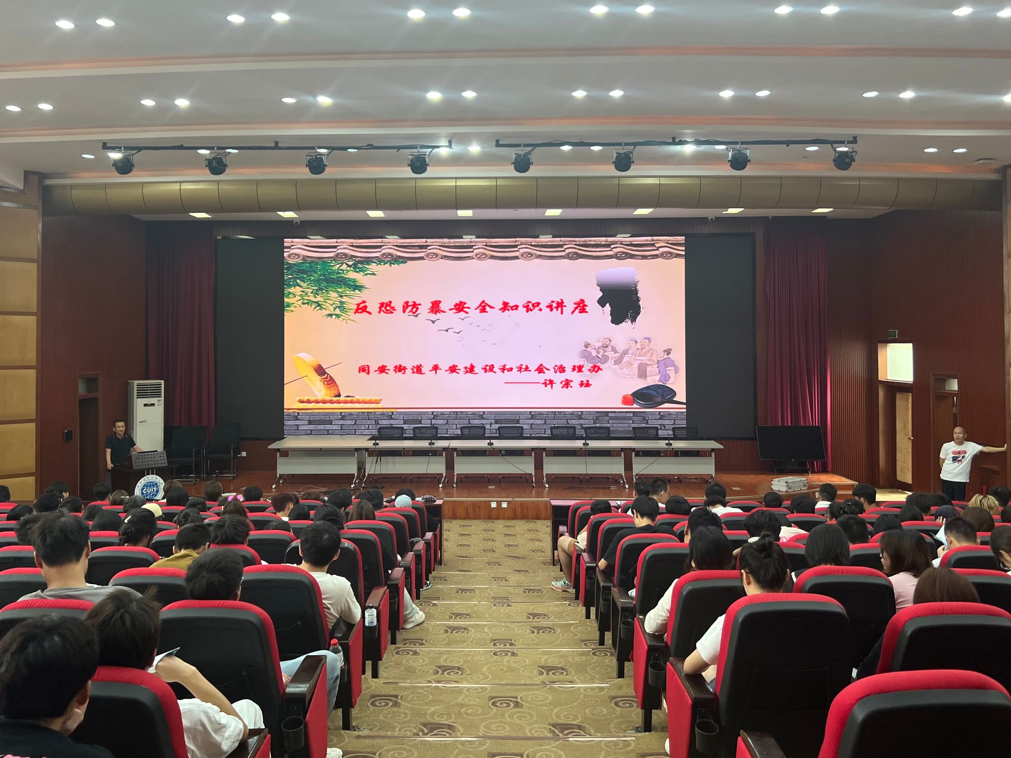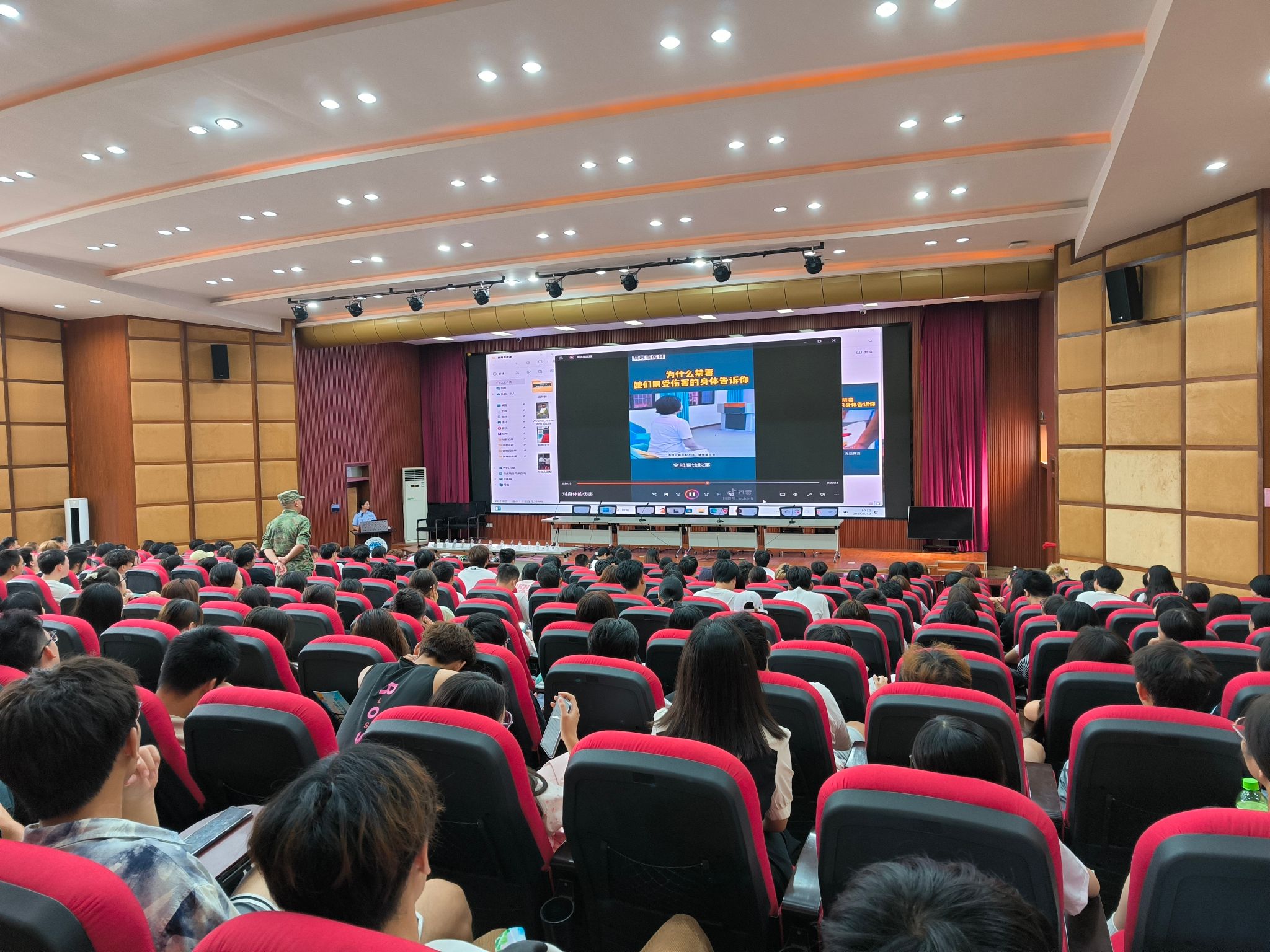 为深入开展禁毒宣传教育,普及毒品防范知识,筑牢禁毒思想防线;提高校园安保人员的反恐防爆意识,增强应急处突能力,由我院主办,成都市第二强制隔离戒毒所和龙泉驿区禁毒委员会办公室共同承办的禁毒、反恐防暴知识专题讲座,9月19日上午在我校龙泉校区学术报告厅举行,300多名师生参加专题报告会。