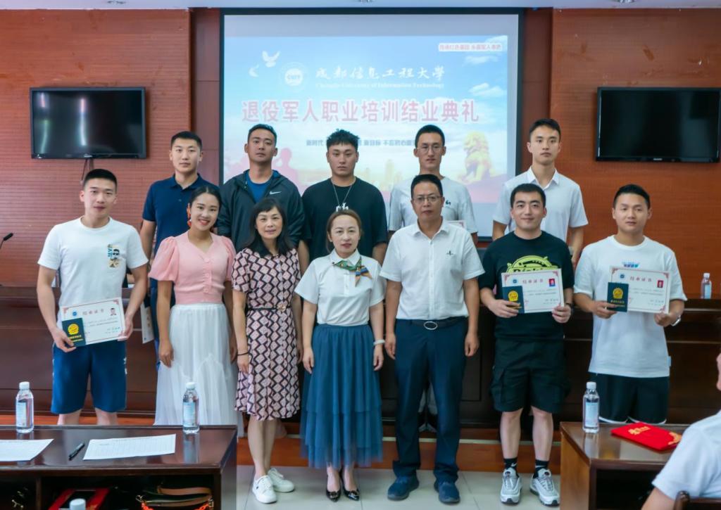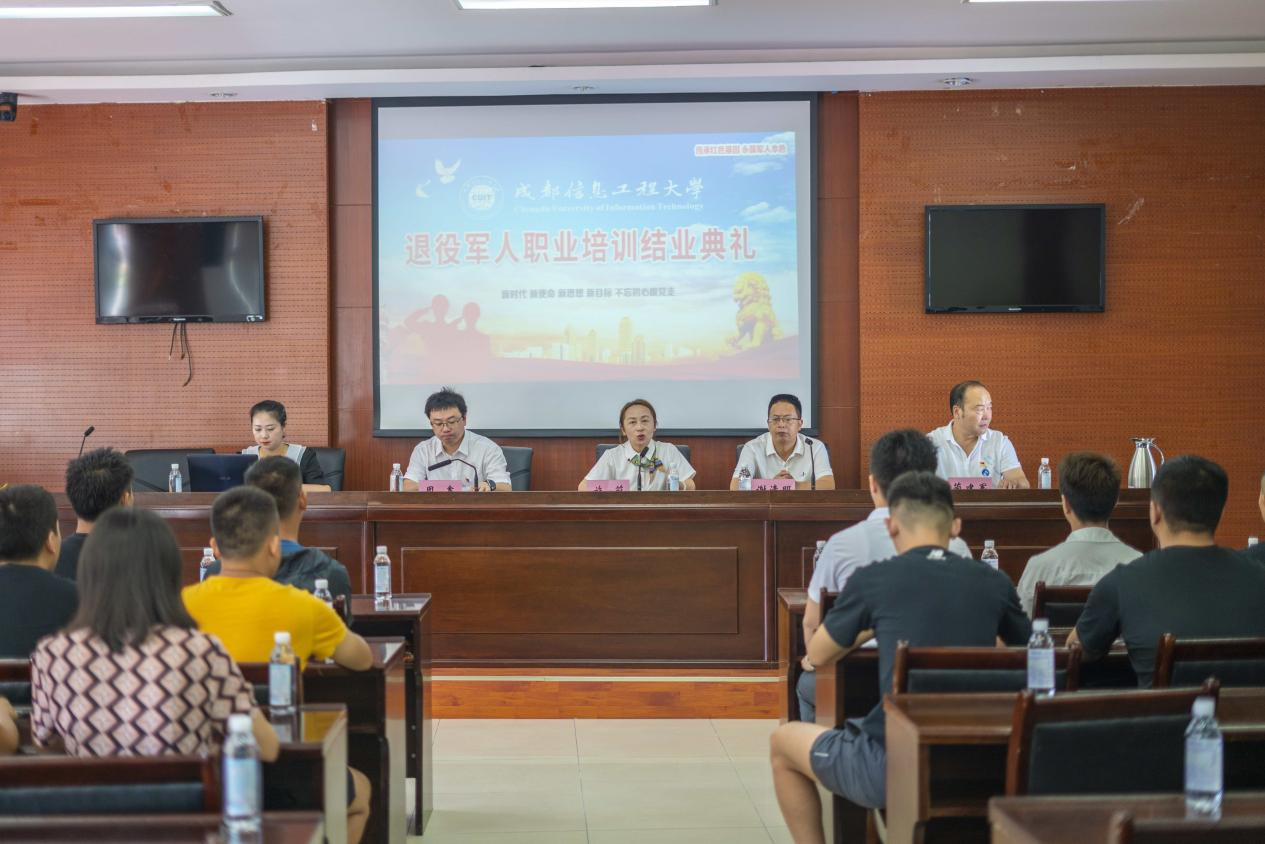施莉和周鑫分别致辞,他们向全体退役军人学员顺利完成职业培训表示祝贺,对相关单位及工作人员对培训班给予的支持和帮助表示感谢。他们谈到,退役军人职业培训,加强了对退役军人学员的就业指导和职业人生的规划,引导了退役士兵学员明确学习的意义和方向,着力提高了退役军人综合素质,帮助退役军人主动适应了“三个转变”。学校将持续开展退役军人培训工作,以政治思想建设为基础,以技术能力提升为目标,以适应社会发展为导向,以科学实践为抓手,紧靠前沿技术和社会需求,努力构建和完善退役军人培训机制。他们希望,退役军人学员们在社会工作中,继续保持军人的优良作风,努力适应角色转变,更好实现退役军人自身价值,助推国家和地方战略和经济发展的实现。