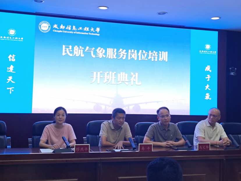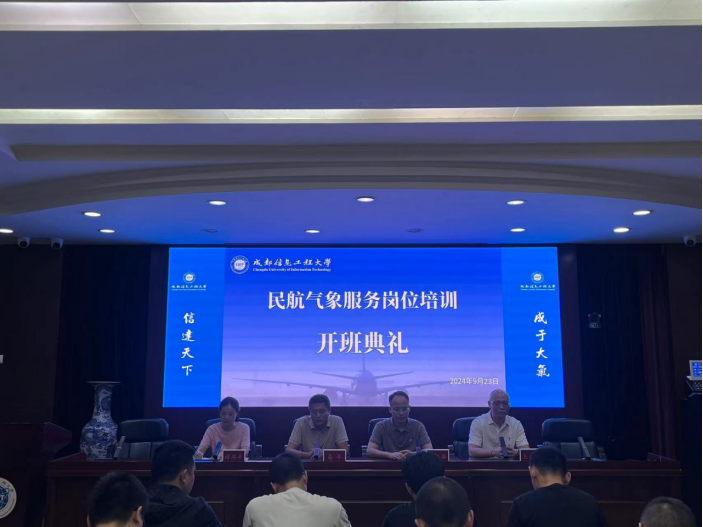 9月23日上午9时,由继续教育学院与电子工程学院、软件工程学院共同举办的民航气象服务岗位培训班开班典礼在航空港校区一会议室隆重举行(本次培训分为自动气象观测设备保障、气象信息系统设备保障、气象雷达设备保障三个专业;气象预报、气象观测将于十月云南昆明开班)。此次培训旨在强化民航气象服务人员的专业技能与服务质量,全方位提升从业者的综合素养,为民航行业的安全翱翔与持续发展注入强劲动力。学校继续教育学院党委书记易平、电子工程学院党委书记缪燕平、软件工程学院党委书记马义华、继续教育学院培训科科长王玉军出席典礼并致辞,全国各机场培训学员以及培训班相关工作人员参加了本次开班典礼。