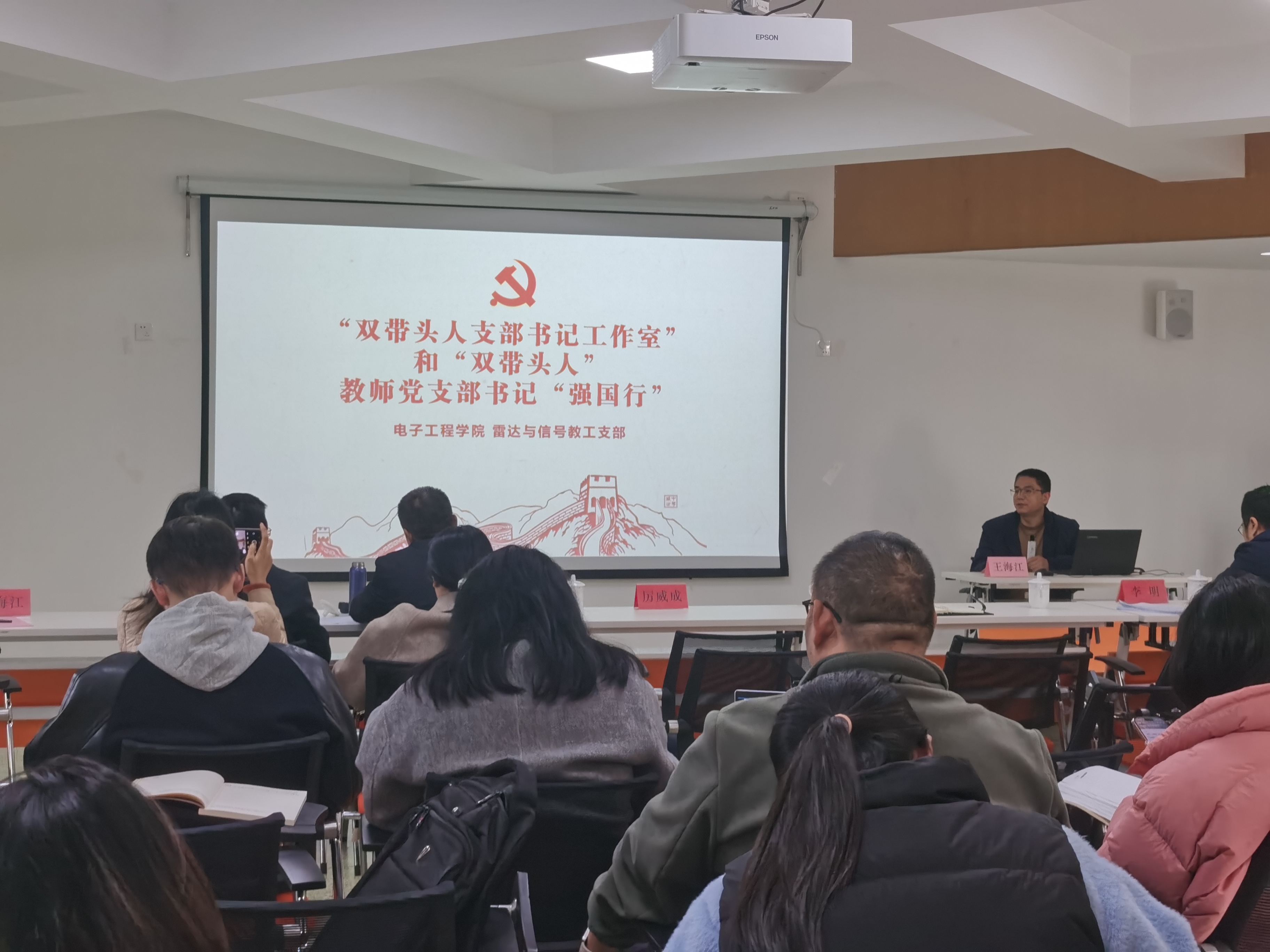 电子工程学院雷达与信号教师党支部书记王海江教授分享了建设“双带头人教师党支部书记工作室”和参选教师党支部“强国行”的相关经验,他强调形成党建和业务齐头并进、统筹发展的格局,对于加强高校基层党组织建设具有十分重要的意义,他提到的构建“气象六要素”为参会的各党支部提供了良好的借鉴。