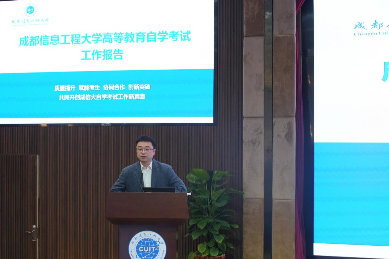 吴锡代表学校致辞,向省教育厅、省教育考试院等相关单位和领导长期以来对我校自学考试事业发展给予的支持、关心和帮助表示衷心的感谢。他指出,学校自学考试工作要锚定国家需求,强化特色赋能,为成渝地区双城经济圈建设培育紧缺人才。要深化数字转型,提升服务质效,使自考教育培养形式更灵活、培养目标更精准、学习者需求更贴近。要坚守育人初心,筑牢质量底线,以高标准、严要求守护学历教育的社会公信力。他强调,学校的继续教育办学要坚持以习近平新时代中国特色社会主义思想为指导,以教育数字化转型为帆,以产教融合创新为舵,在建设西部教育高地的新征程中取得新突破。