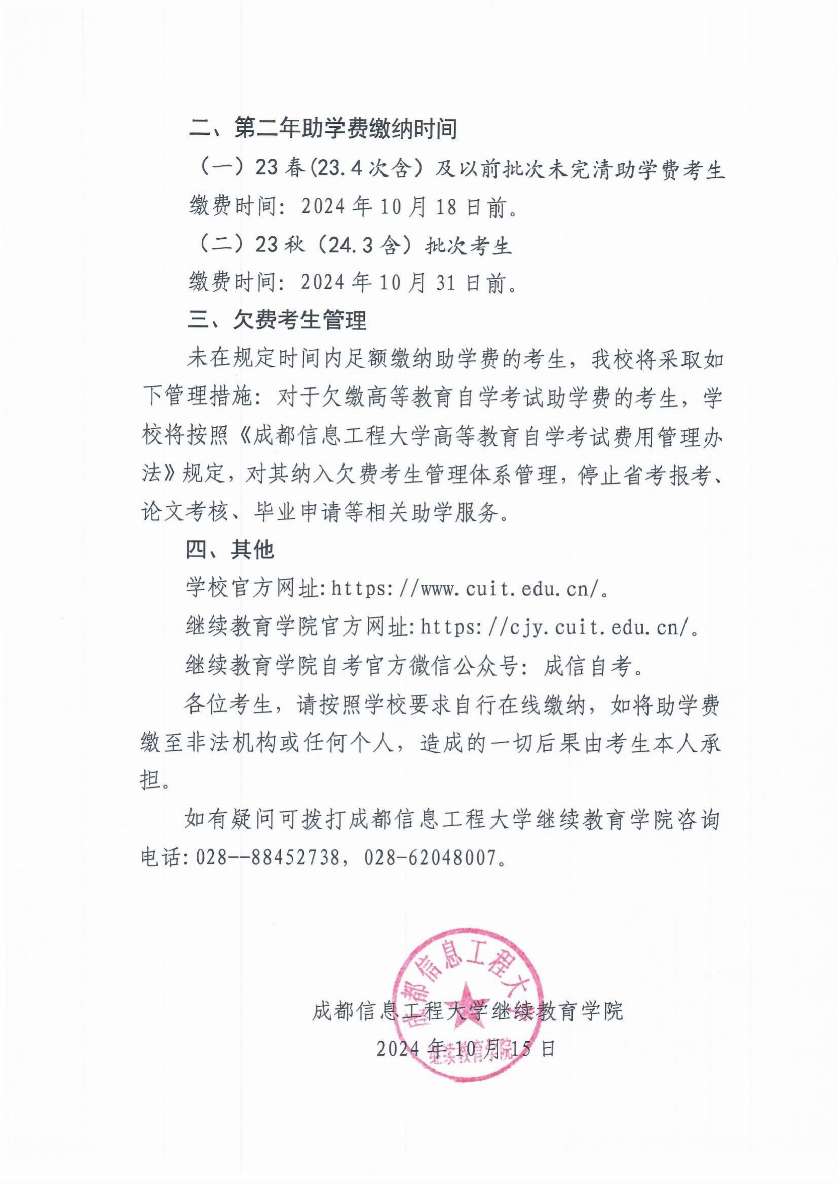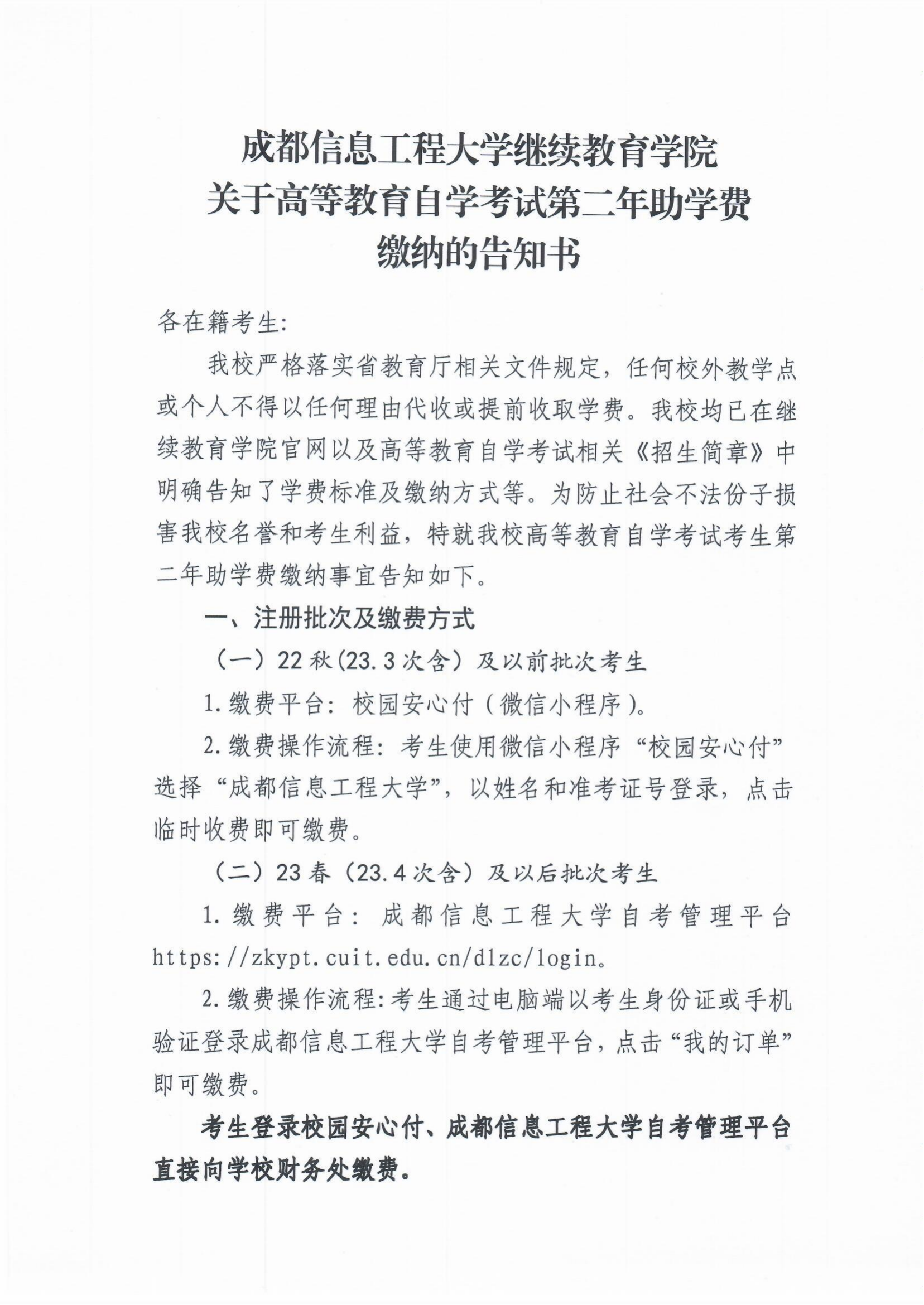 betway必威西汉姆联继续教育学院关于高等教育自学考试第二学年助学费缴纳的告知书